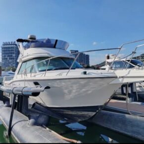 This boat is equipped with a Volvo Penta 260-horsepower diesel engine, a “high-power configuration” for this model, making it very practical and retaining its value well.