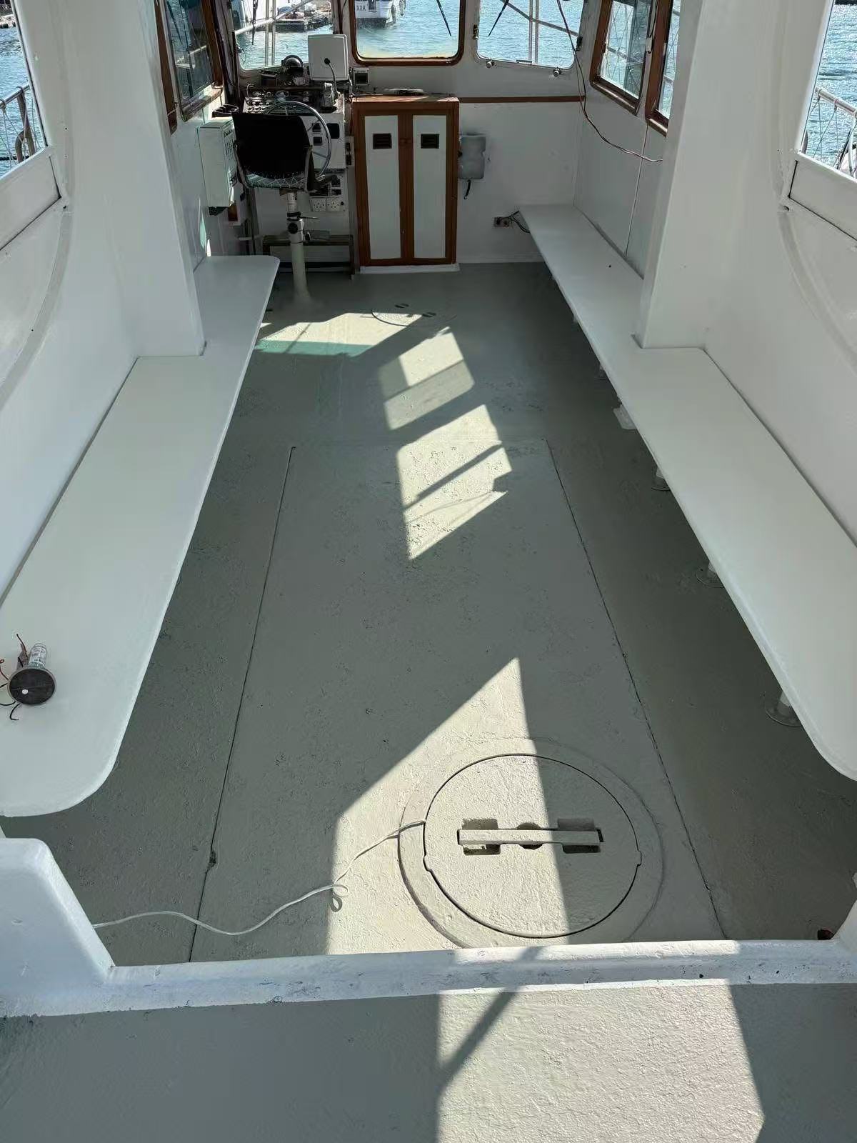 Cummins 190HP: Cummins engines are known for their durability and high torque. While 190 horsepower won’t propel a 42-foot boat very fast (estimated cruising speed around 8-10 knots), its low-endurance, high-torque configuration is ideal for long-duration, slow-speed trolling or spot fishing.