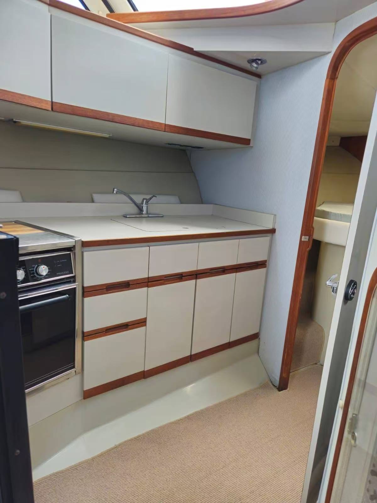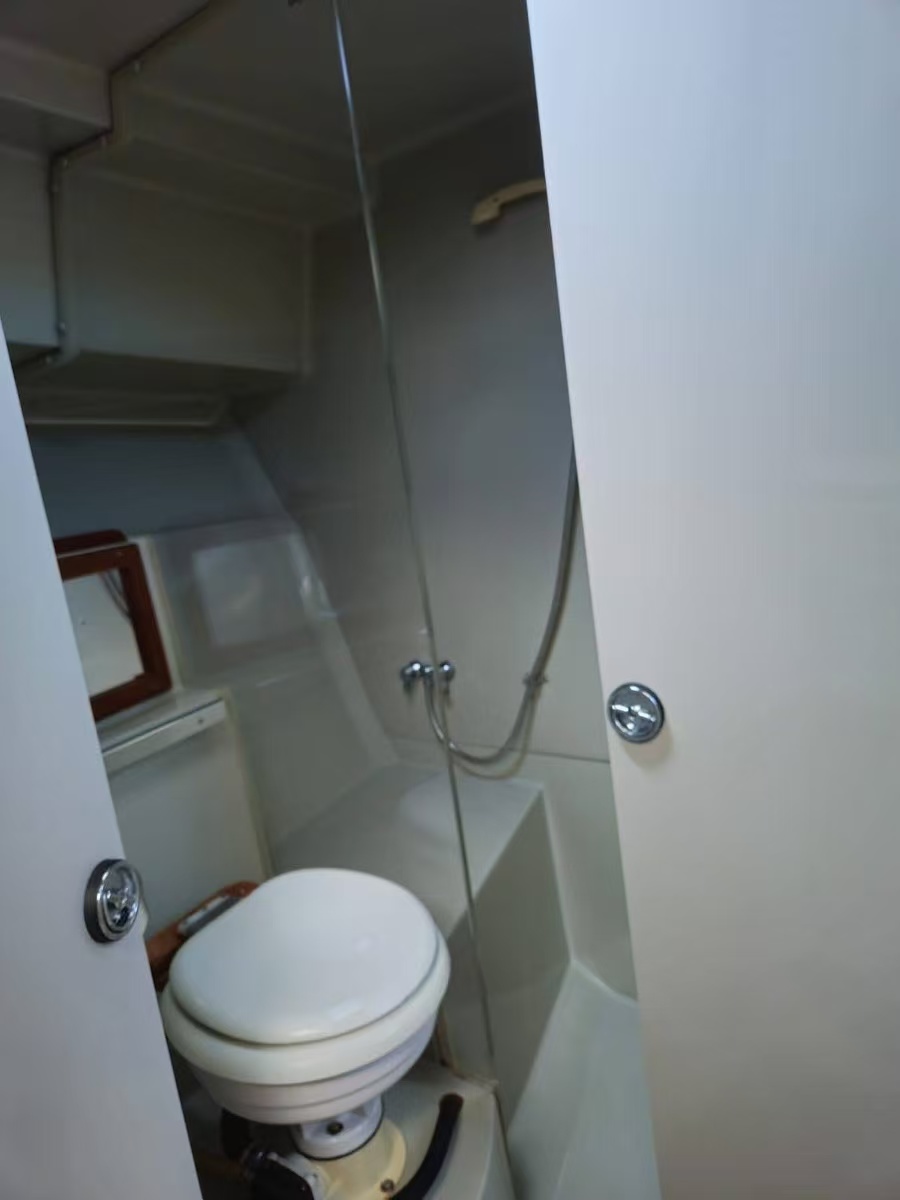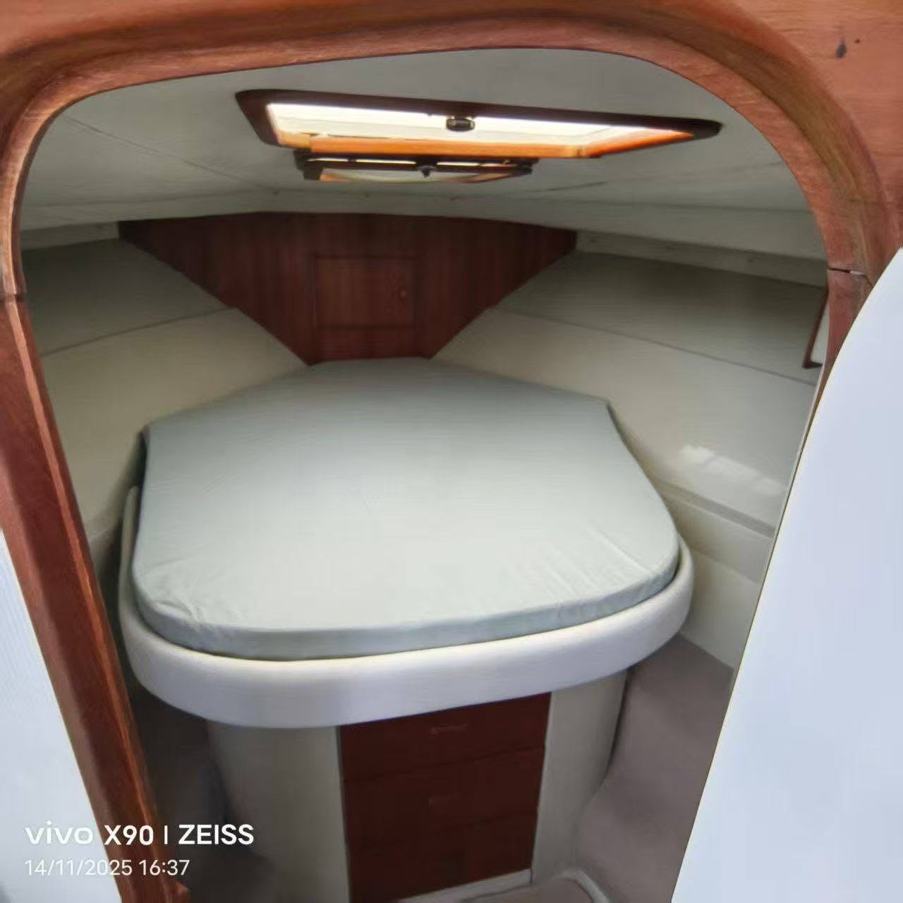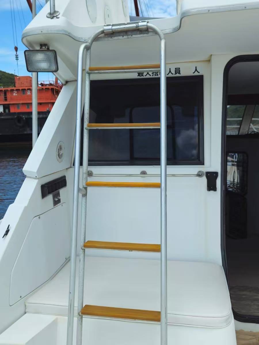 It accommodates 16 people and includes a galley and amenities, with a 1400-liter fuel tank and a 320-liter ballast tank.