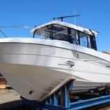 The composite material (GRP) semi-displacement hull, designed by renowned naval architect Don Blount, ensures exceptional stability and sailing efficiency.