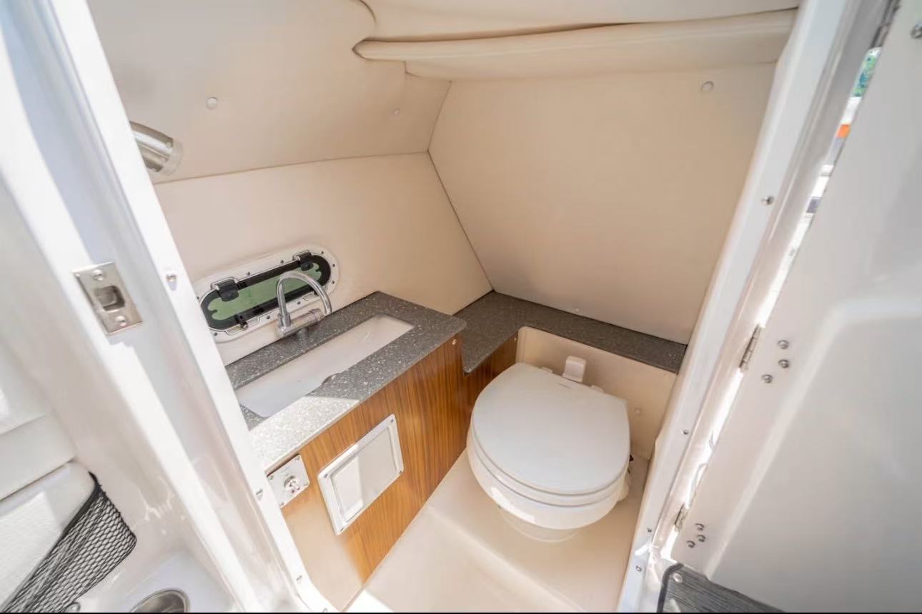 Larger stern platform, 10-person capacity, includes a toilet, ready to enjoy immediately.