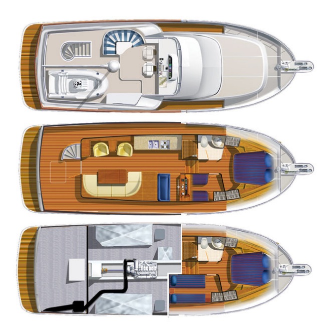 Accommodation : 2 cabin layout with 1 Bathroom. Spacious Saloon, Flybridge area and aft area.