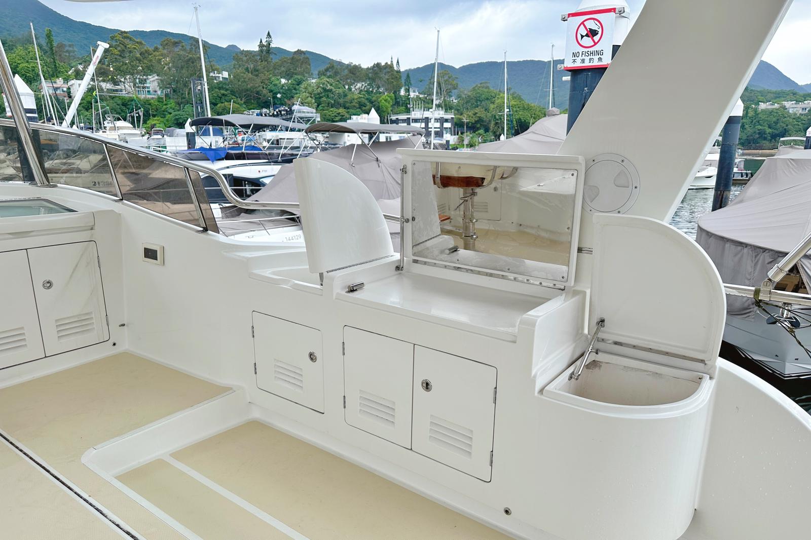 Equipment : Garmin Navigation system with Radar / GPS / Bow Thruster / Stern Thruster / Electronic Engine Guage / Hydraulic lift on the swim platform to lift and store Jetski (Jetski not included) Fully air conditioned / Electric cooker and oven / Microwave