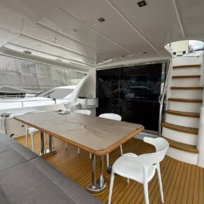 Ferretti(法拉帝)是義大利頂級遊艇品牌,以「海上豪宅」的設計理念和卓越的操控性能著稱。這艘 80 呎的型號是該品牌在 2000 年代初期非常成功的旗艦船型之一