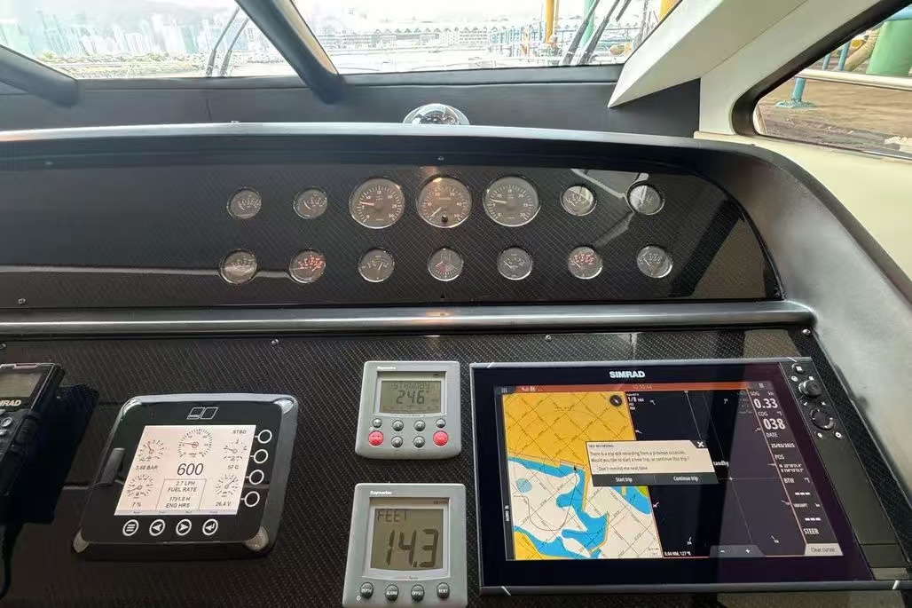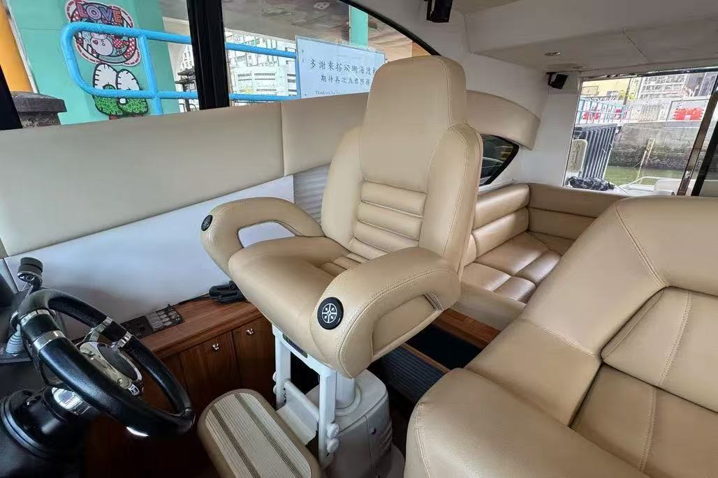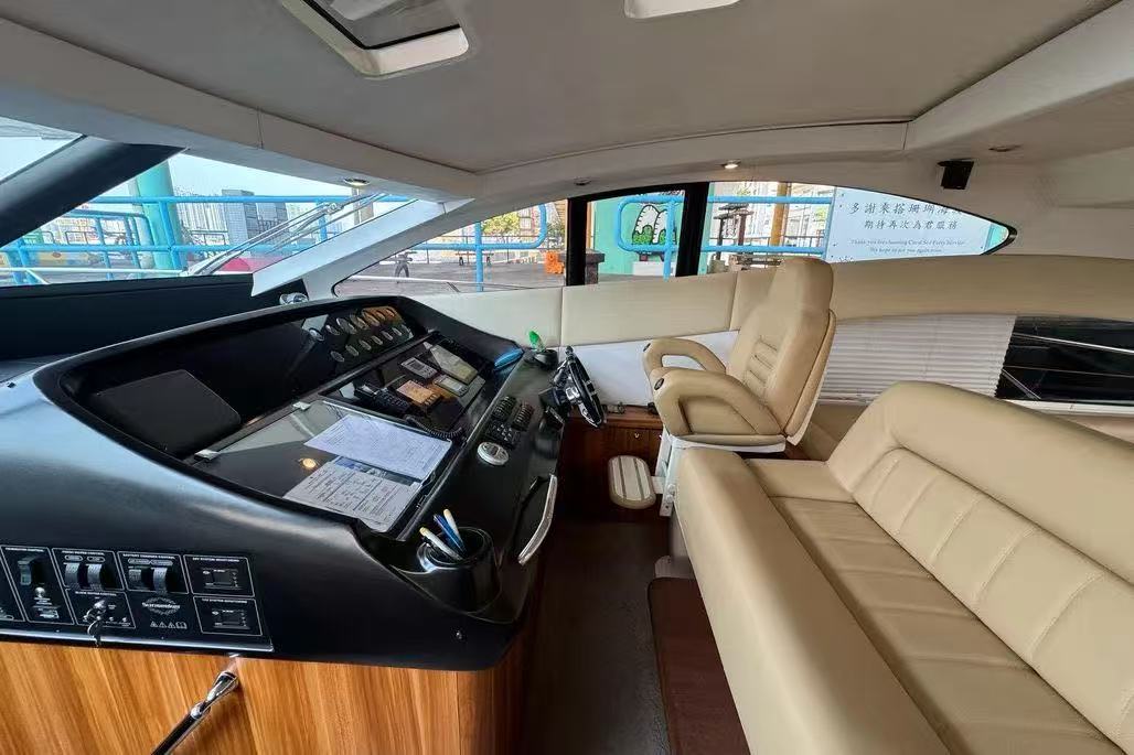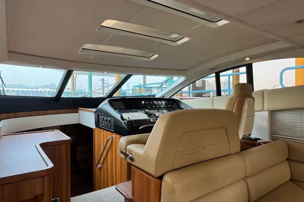 在香港的遊艇市場中,外型流線的歐洲運動型遊艇 (Sport Cruiser) 向來深受歡迎,但這類船型往往伴隨著「載客量少」的致命傷。這艘 2008 年的 Sunseeker 62 打破了這個限制,不僅保留了極具侵略性的黑白雙色流線外觀,更擁有同級別極罕見的高載客量,是兼顧私人品味與大型社交需求的絕佳盤源。