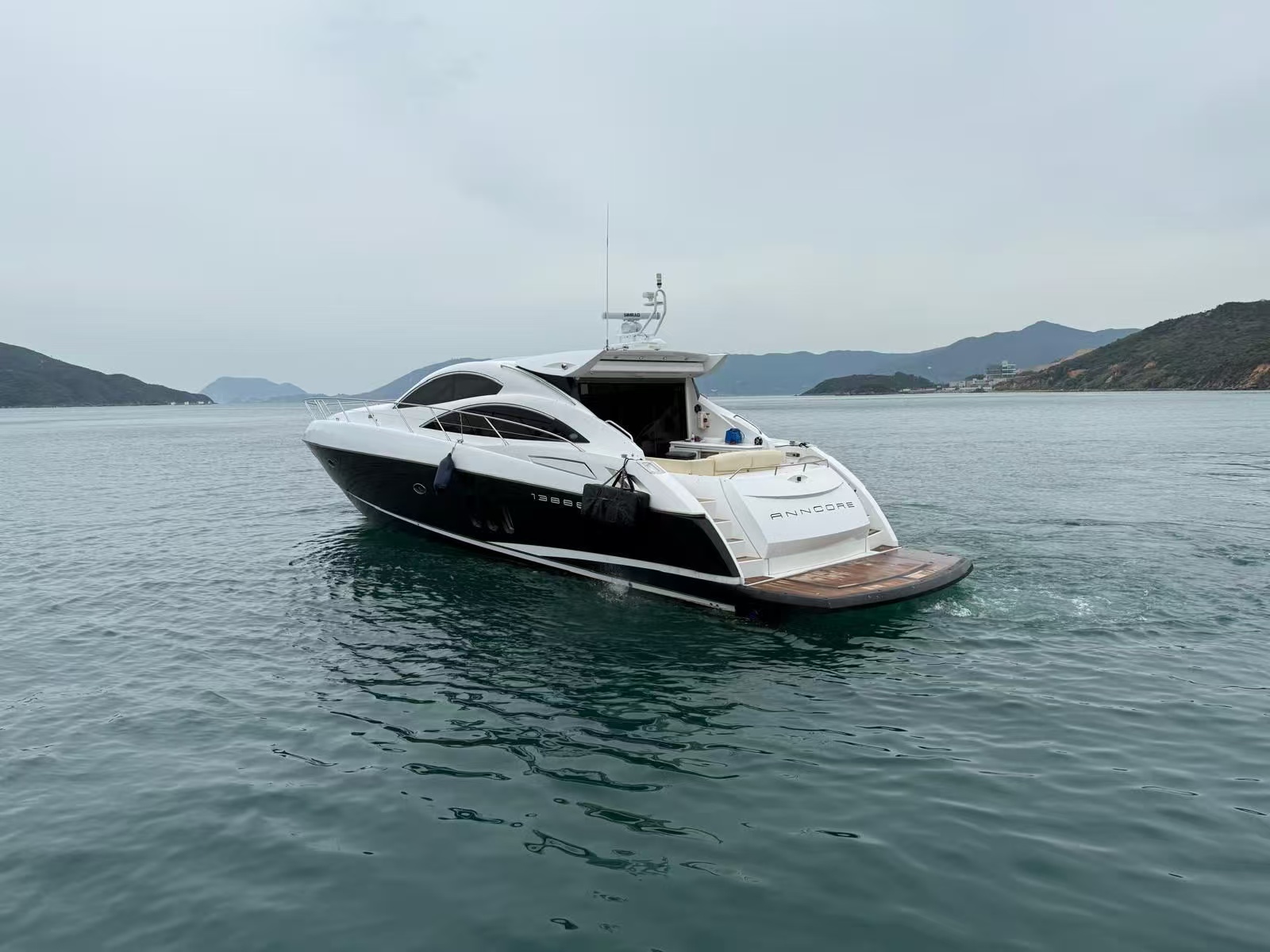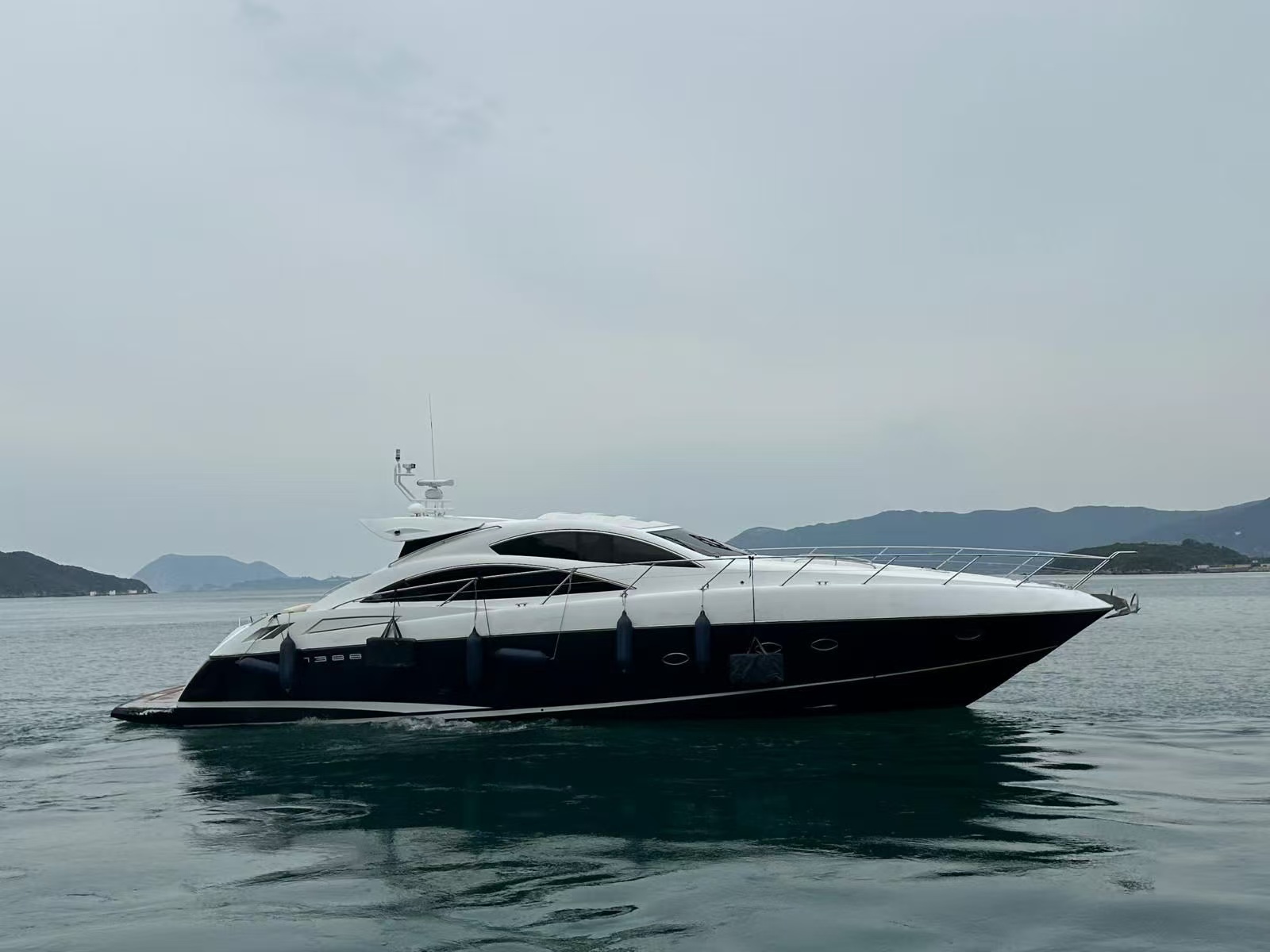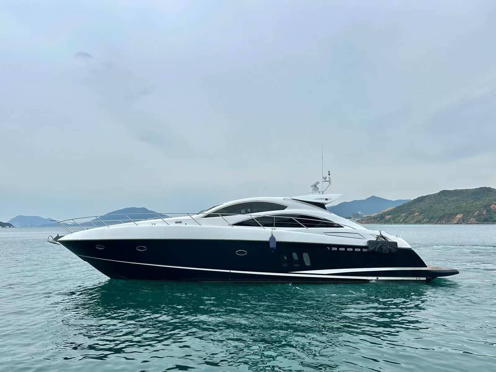 在香港的遊艇市場中,外型流線的歐洲運動型遊艇 (Sport Cruiser) 向來深受歡迎,但這類船型往往伴隨著「載客量少」的致命傷。這艘 2008 年的 Sunseeker 62 打破了這個限制,不僅保留了極具侵略性的黑白雙色流線外觀,更擁有同級別極罕見的高載客量,是兼顧私人品味與大型社交需求的絕佳盤源。