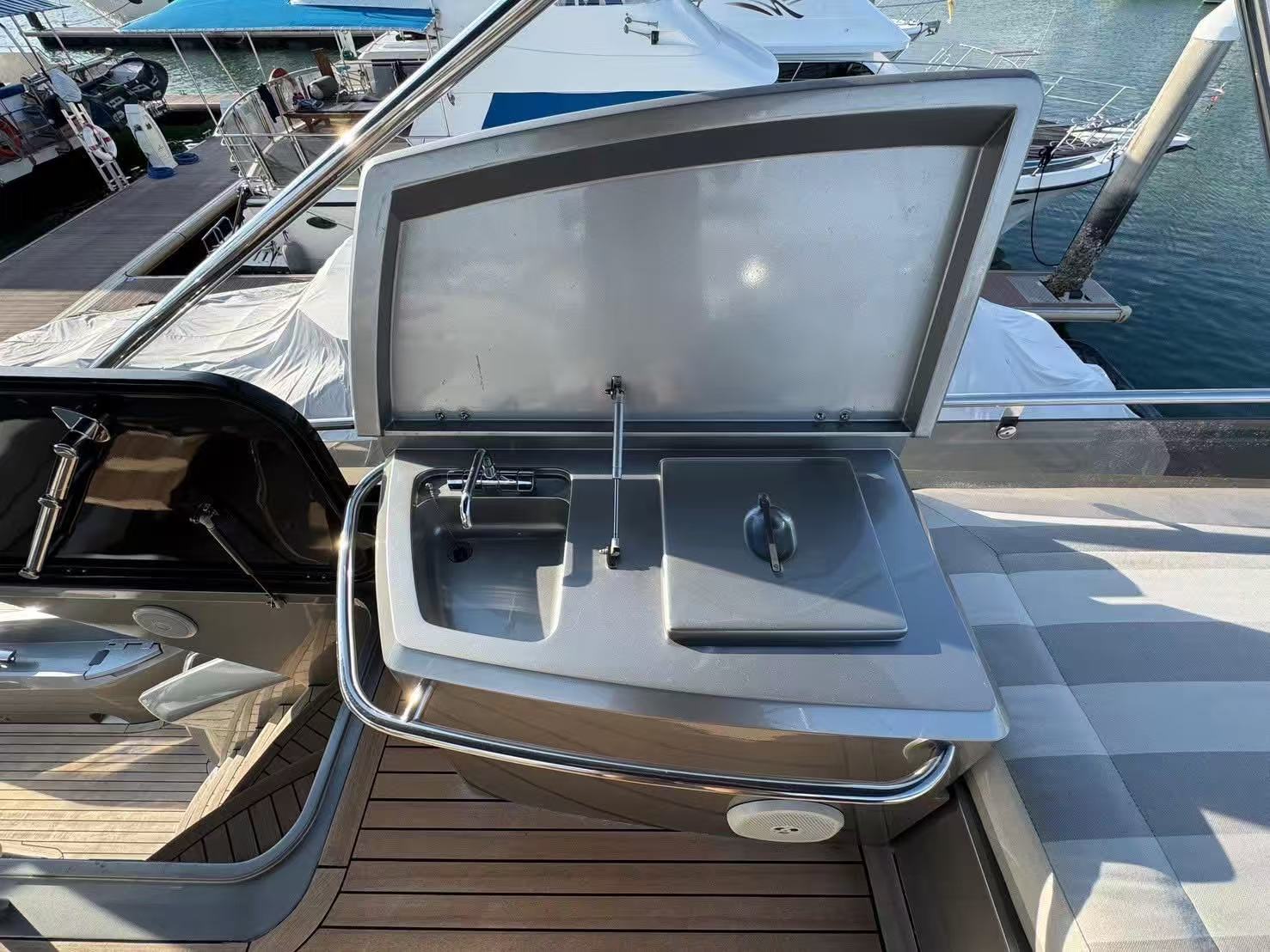 這艘遊艇融合了Sunseeker的標誌性工藝和當代特色,創造了一個真正升級的水上體驗。由雙MAN引擎提供動力,去年裝載了高級全電子升級和新的genset.