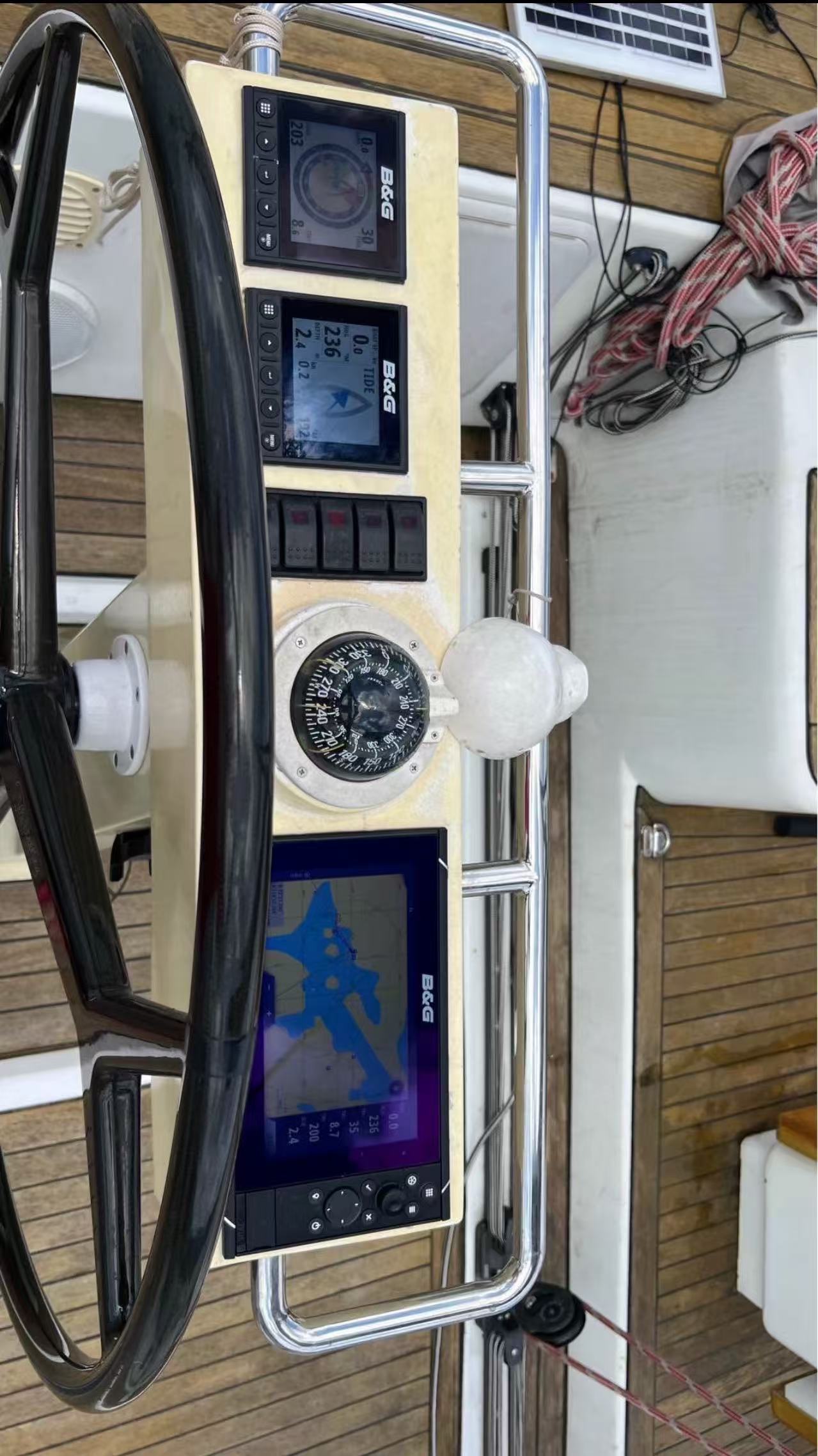 摺合式螺旋槳 (Folding Propeller): 收帆航行時能減少水阻,提升船速。B&G 導航系統: B&G 是帆船競賽界的頂級電子設備標準,專為風力計算和戰術導航設計。